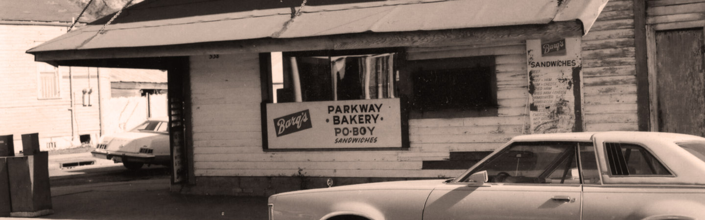 Parkway Bakery and Tavern has been a neighborhood landmark since it opened in 1911. German baker Charles Goering, Sr. ran Parkway Bakery until 1922 when Henry Timothy, Sr. purchased it, with the intent of continuing to run it as the neighborhood bake shop. In 1929 he added the recently invented “Poor Boy” sandwich to feed the workers at the American Can Company. They operated twenty-four hours a day, so with the addition of the poor boy, so did Parkway.