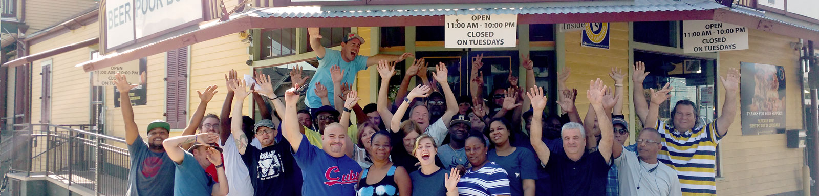 We’re poor boy experts, so it’s only natural that we share the fascinating history of the legendary sandwich. Back in 1929, Bennie and Clovis Martin’s hole-in-the-wall coffee stand became the birthplace of the poor boy–a hearty sandwich they invented for streetcar motormen who were on strike to improve labor conditions and wages. Bennie Martin said, “We fed those men free of charge until the strike ended. Whenever we saw one of the striking men coming, one of us would say, ‘Here comes another poor boy.'”